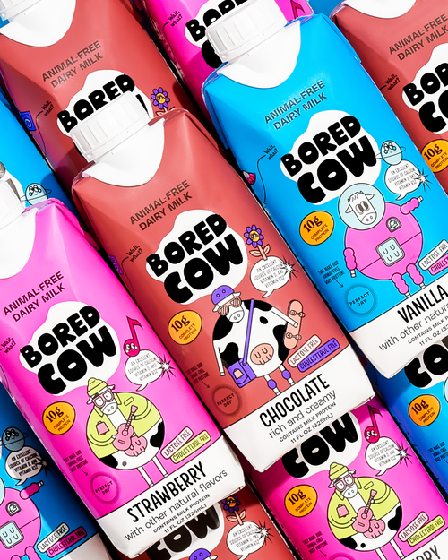 Bored Cow is a new kind of milk alternative made with milk protein from fermentation instead of cows. It looks, feels, tastes, and acts just like dairy, because it is.